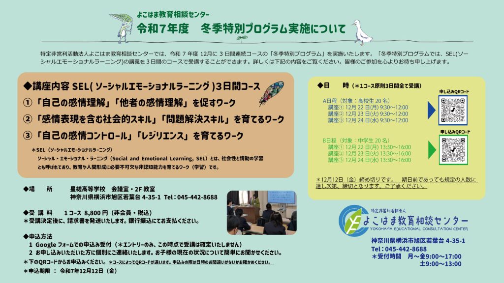 令和7年度 冬季特別プログラムを実施いたします